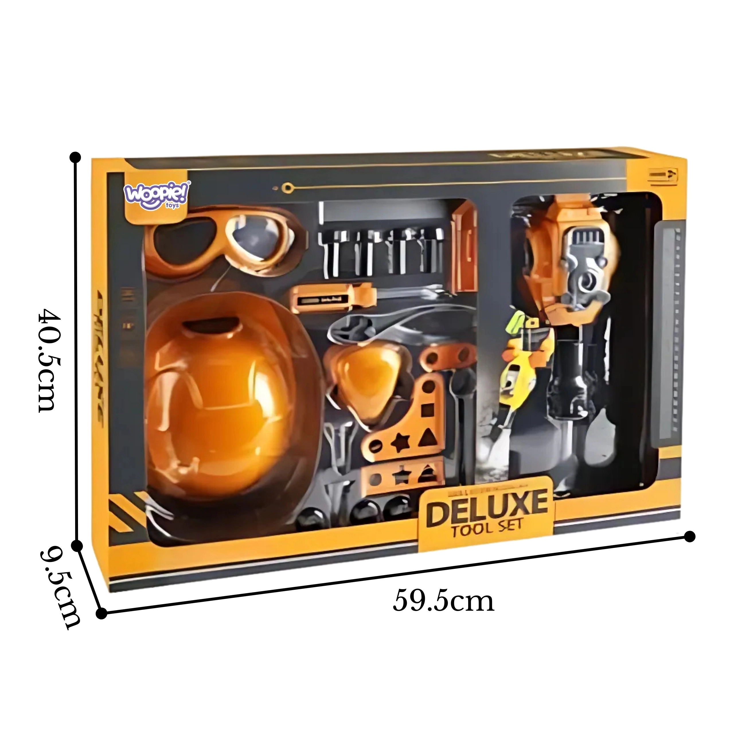 Kompletan set za male majstore brenda WOOPIE donosi kacigu, zaštitne naočale, realistični baterijski pneumatski čekić i mnogo alata i elemenata koji potiču maštu, razvijaju motoriku i motiviraju na kreativnu igru. Zahvaljujući realističnim efektima i čvrstoj izradi, idealan je za duge sate zabave na sigurnom kućnom “gradilištu”.