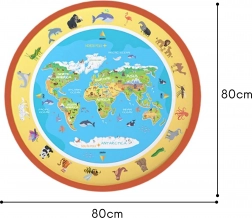 Podloga s kartom i ilustracijama životinja potiče prirodno učenje geografije i prirode kroz igru. Idealno za znatiželjnu djecu od 3 godine.