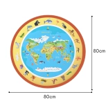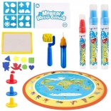 Velika okrugla vodena podloga promjera 80 cm s motivom karte svijeta i životinja pretvara pod u kreativni atelje. Djeca crtaju samo vodom – bez boja, mrlja i brige, a crteži nakon sušenja sami nestaju. Potiče finu motoriku, kreativnost i rano upoznavanje svijeta.