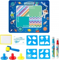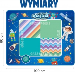 Otkrijte zabavni svijet stvaranja s vodom. Podloga WOOPIE omogućuje djeci crtanje bez tinte i boja – dovoljno je napuniti priložene flomastere vodom i početi stvarati. Brzosušeća površina održava okruženje čistim, a crteži sami nestaju nakon nekoliko minuta. Svemirski dizajn s planetima, raketama, robotima i astronautima pretvara svako crtanje u galaktičku avanturu.
