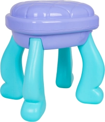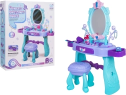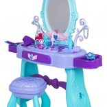 Pružite djeci njihov vlastiti čarobni kozmetički kutak. Ovaj toaletni stolić u kombinaciji tirkizne i ljubičaste boje nudi veliko ovalno ogledalo s rasvjetom, praktičnu ladicu i bočne odlagalne površine za sve dodatke. Stabilna stoličica osigurava udobno sjedenje i sigurnu igru.