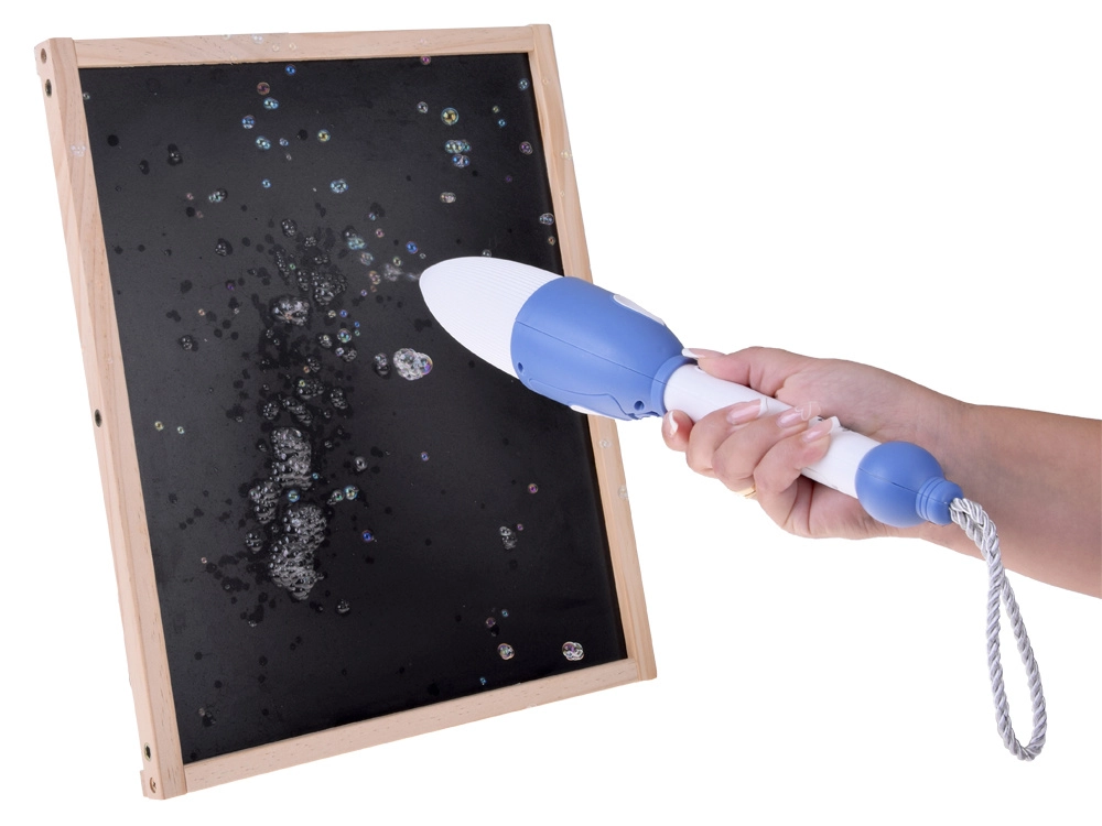 U kompletu je sve potrebno za trenutnu zabavu – dovoljno je napuniti bateriju, napuniti spremnik i početi pisati mjehurićima. Savršen poklon za male umjetnike i ljubitelje mjehurića.