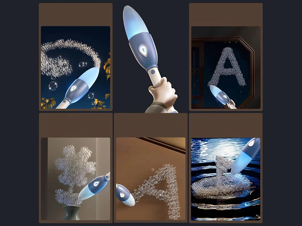 Jednim pritiskom gumba olovka stvara kontinuirani mlaz sapunastih mjehurića – jednostavno, čisto i zabavno za djecu i odrasle.