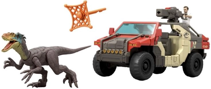 Uđite u svijet JURASSIC WORLD s akcijskim setom koji spaja realistično igranje i maštu. Robusno terensko vozilo s odvojivom kulom i funkcionalnim izbacivačem omogućuje djeci inscenirati napete scene, od lova na dinosaure do znanstvenih misija s uzimanjem DNA. Set sadrži detaljnu figuru velociraptora i figuricu Martina Krebsa za potpuni doživljaj igre.