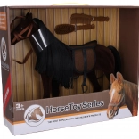 Ovaj tamni plišani konj veličine 35 cm odličan je pratitelj za djecu koja vole životinje i brigu o njima. Zahvaljujući priloženom sedlu i dvama češljevima djeca mogu uređivati konjića, češljati ga i stvarati vlastite priče. Mekana izrada ugodna je na dodir i pogodna za svakodnevnu igru.