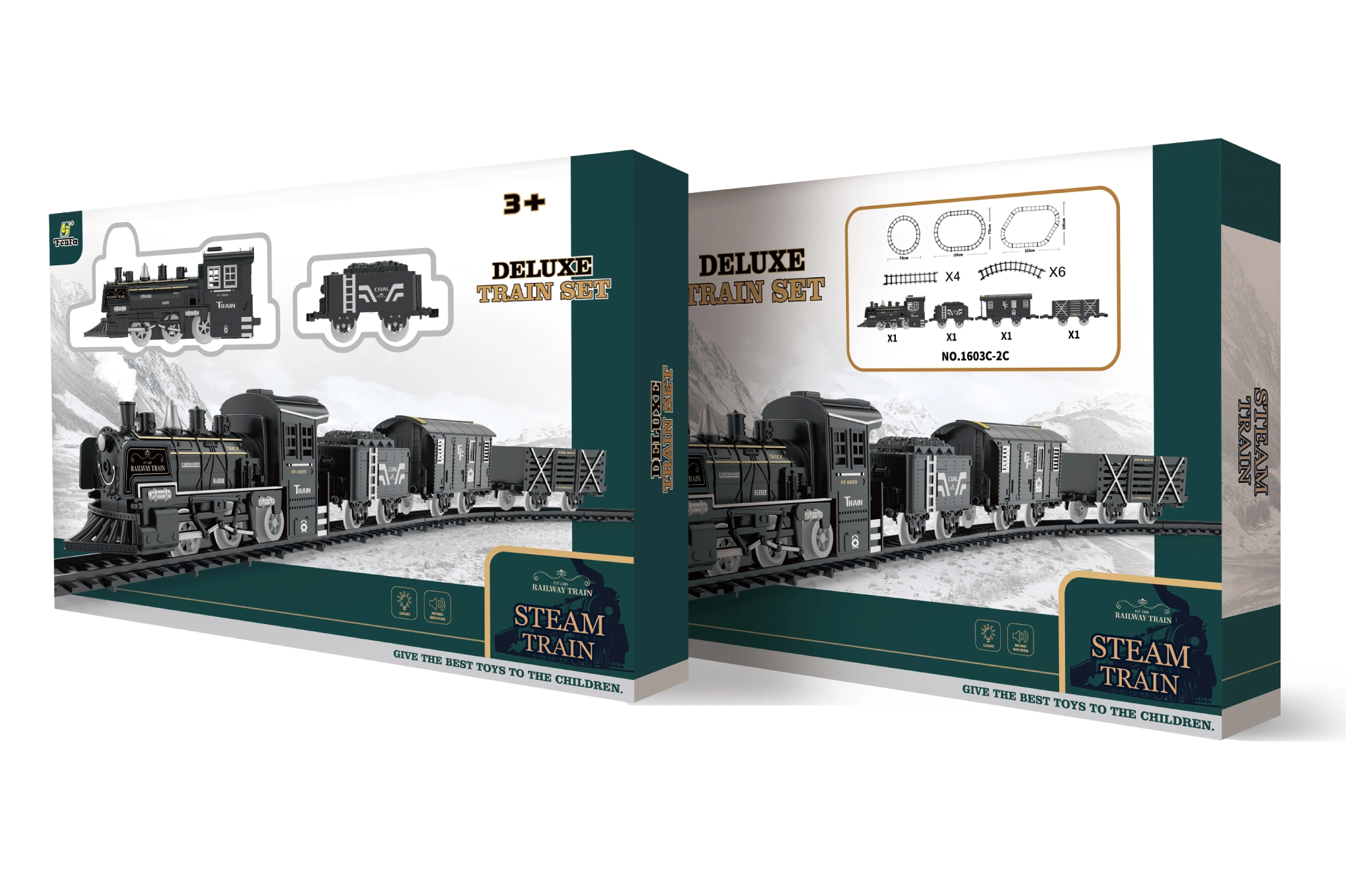 Uživajte u realističnoj vožnji s dječjim vlakom koji donosi dimne efekte, zvučne efekte i varijabilno kolosiježe do 125 × 105 cm. Dovoljno je doliti vodu u spremnik ispod srebrnog dimnjaka i pokrenuti ON/OFF prekidačem na boku lokomotive.