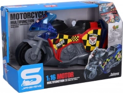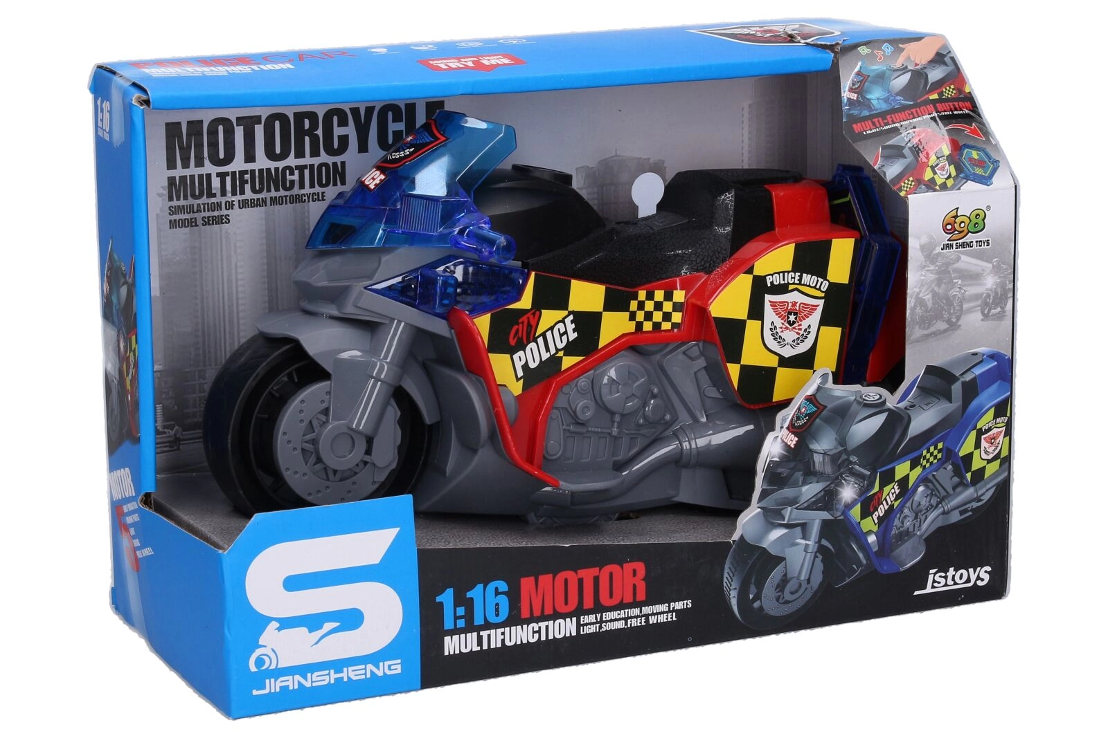 Ovaj policijski motor duljine 25 cm donosi djeci puno zabave i realističnih detalja. Zahvaljujući svjetlosnim i zvučnim efektima igra se pretvara u akcijsku policijsku intervenciju, dok slobodni kotači osiguravaju glatku vožnju po ravnim površinama. Aktivacija efekata je jednostavna – dovoljno je pritisnuti gumb na gornjoj strani spremnika.