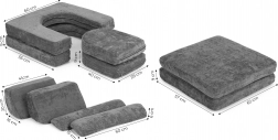 Sklopivi modularni dječji kauč za 2 djece od 10 dijelova od meke tapecirane tkanine – siva ECOTOYS