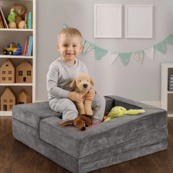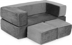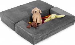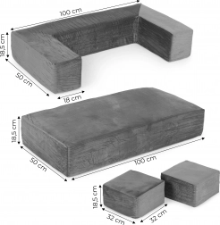Stvorite djeci njihovo vlastito sigurno mjesto za odmor i igru. Ova modularna dječja sofa od 4 dijela nudi udobno sjedenje, beskrajne mogućnosti slaganja i mekane, lagane pjenaste ispune sa lako skidivim navlakama. Zahvaljujući univerzalnom sivom dizajnu uklopit će se u svaku dječju sobu i nosi do 80 kg.