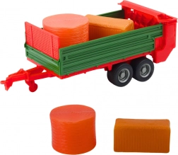 Zelena dvoosovinska prikolica s otvorenom tovarnom površinom idealna je za utovar i prijevoz bala sijena u sklopu farmerskih scenarija.