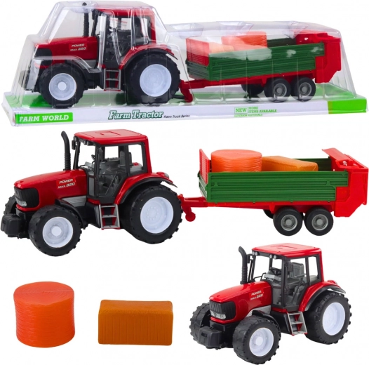 Otkrijte robustan farmerski set koji će oduševiti male ljubitelje sela. Detaljno izrađen crveni traktor s velikim kotačima i odvojivom zelenom prikolicom vjerno oponaša prave poljoprivredne strojeve. U kompletu su i bale sijena koje se mogu utovariti, prevoziti i istovariti.