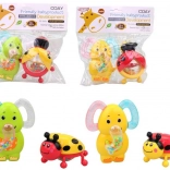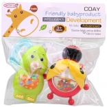 Ovaj par zvečka osmišljen je za najmlađe istraživače od 3 mjeseca. Lagana plastika i ergonomski oblik omogućuju lako držanje, dok nježan zvuk potiče sluh i prirodnu znatiželju djeteta. Kompaktna veličina 12 × 9 cm idealna je za dom i za putovanja.