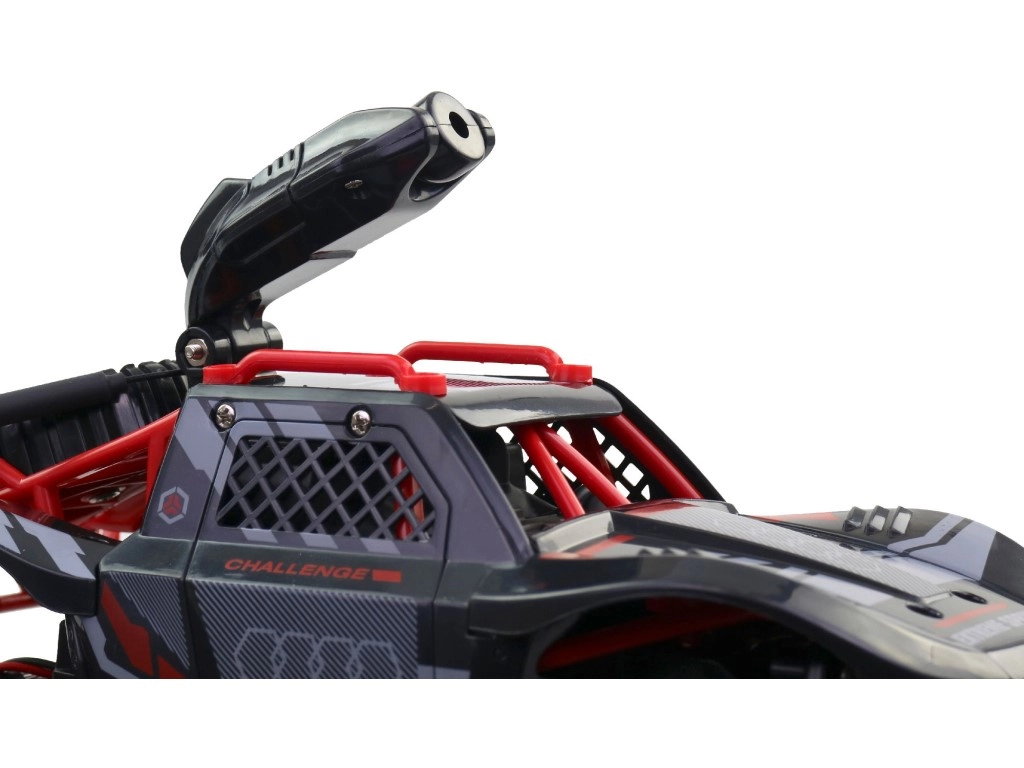 Ovaj off-road RC auto s HD kamerom donosi vam pravi doživljaj vožnje zahvaljujući prijenosu slike izravno na pametni telefon. Putem Wi‑Fi veze pratite scenu uživo u HD-u, a aplikacijom ili daljinskim upravljačem lako kontrolirate smjer i brzinu. Robusna šasija, opružni amortizeri i veliki kotači s dubokim profilom osiguravaju sigurnost na neravnim podlogama i odličnu trakciju.