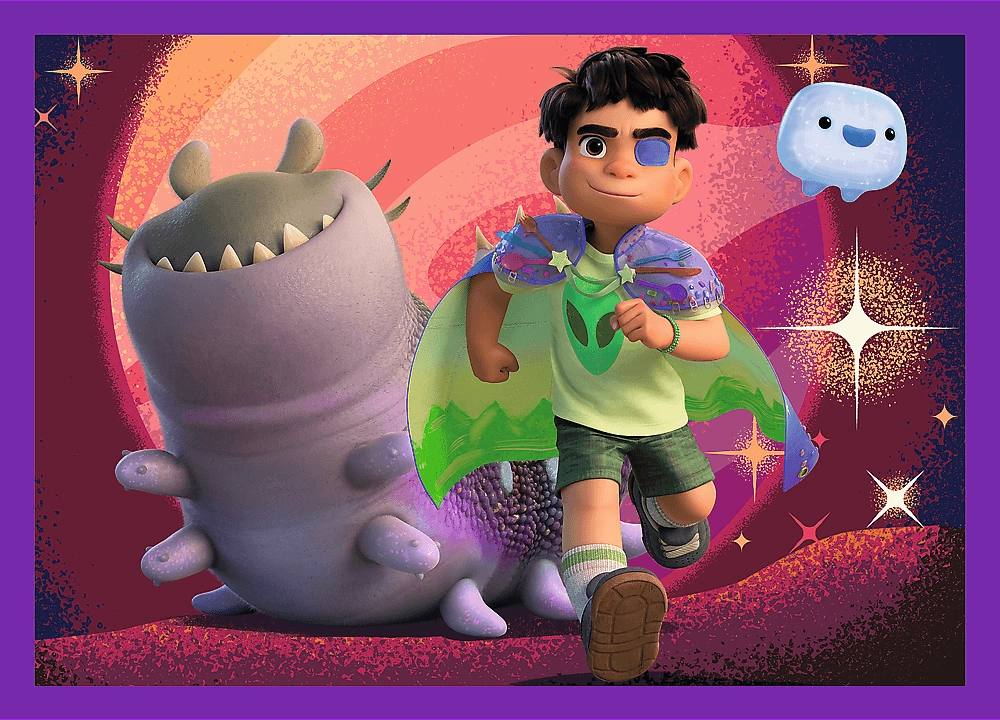 Zabavan set četiriju slagalica s motivom ELIO donosi djeci svemirske avanture u jednom pakiranju. Različit broj dijelova (35, 48, 54 i 70) potiče postupni razvoj vještina, trenira strpljenje i logičko razmišljanje te nudi kvalitetnu izradu brenda Trefl.