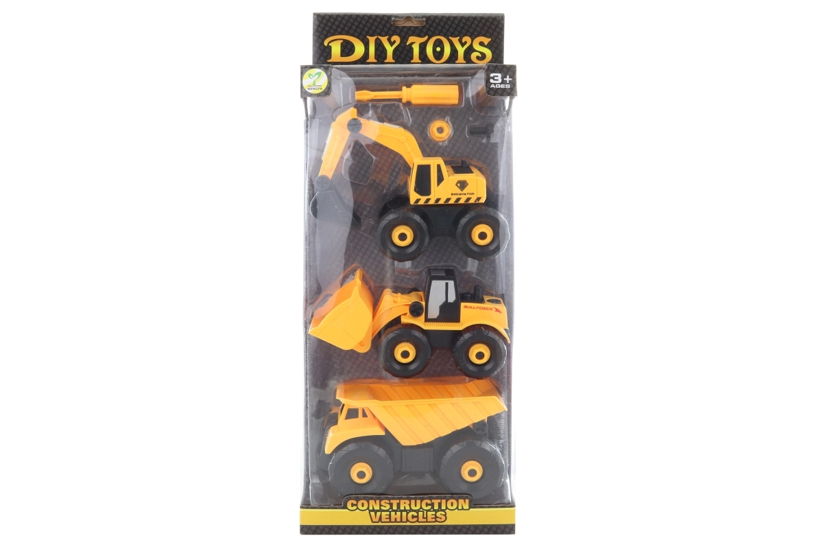 Zabavna građevinska igračka za male graditelje: set sadrži bager, utovarivač, kiper i dječji odvijač. Djeca mogu vozila sama rastaviti i ponovno sastaviti, čime razvijaju finu motoriku, logičko razmišljanje i strpljenje. Idealan poklon za dob 3+.