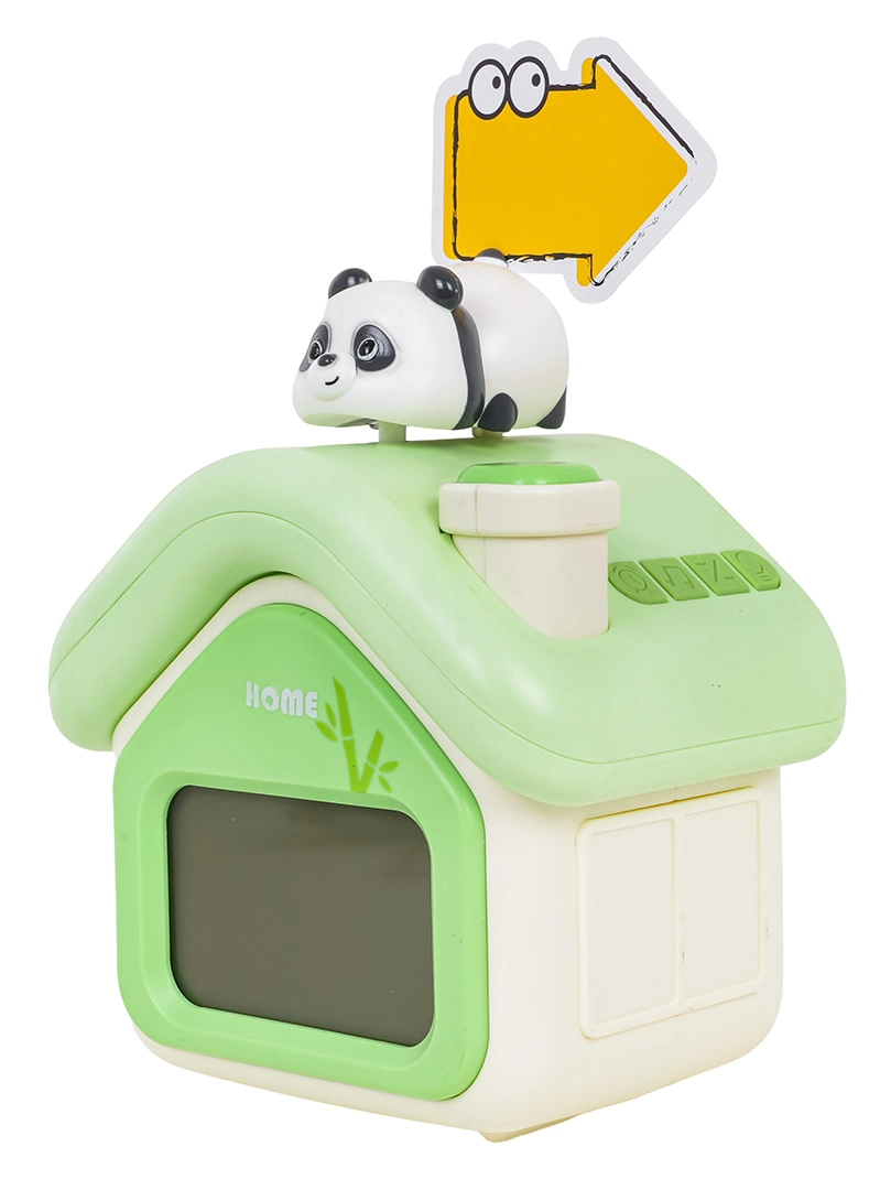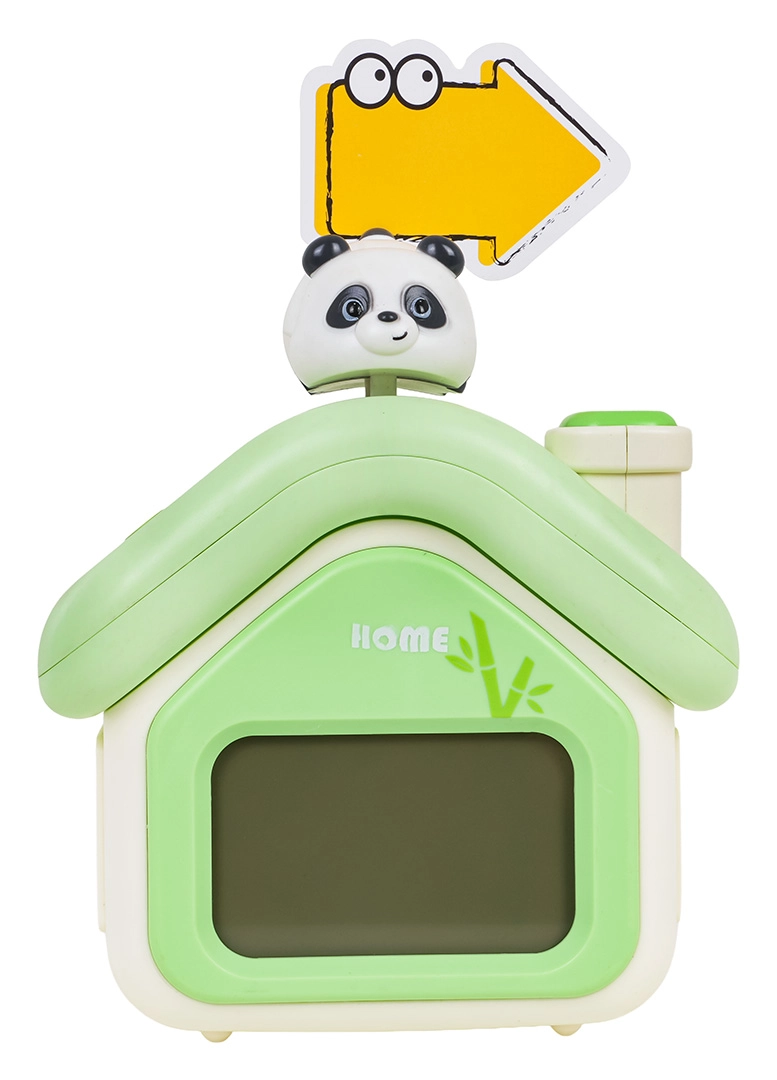 Slatka dječja budilica u obliku kućice s pandom kombinira čitljiv digitalni zaslon, tih rad, noćno svjetlo i alarm s funkcijom odgode. Nudi i mjerenje temperature, timer te indikator baterije. Zahvaljujući velikom kapacitetu baterije s USB‑C punjenjem idealna je za djecu od 3 godine i odlično će upotpuniti svaku dječju sobu.