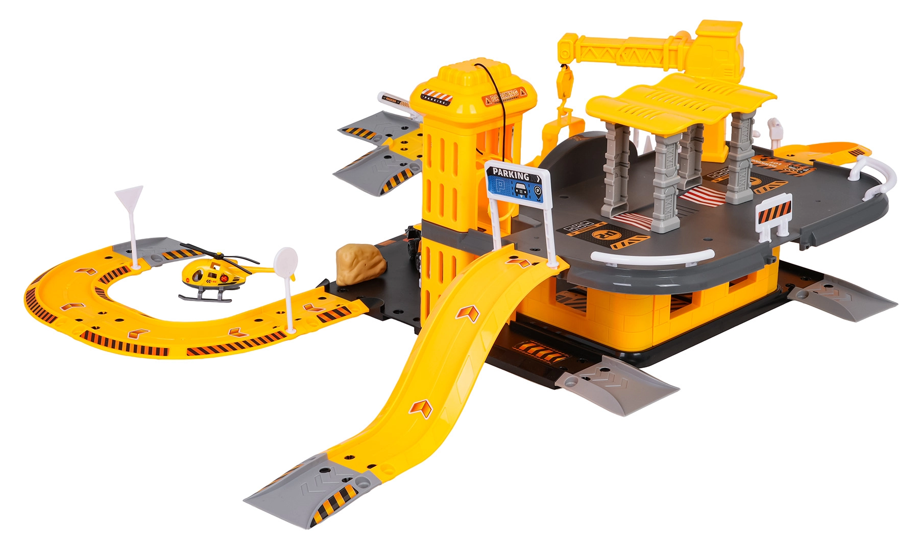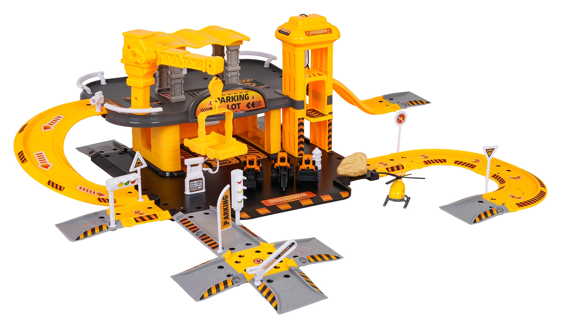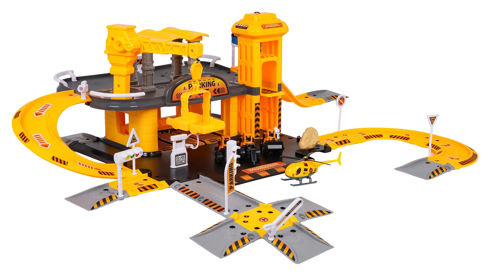 Ovo detaljno izrađeno građevinsko parkiralište oduševit će sve male ljubitelje građevinskih strojeva. Donja razina nudi benzinsku postaju i ceste, lift ručno podiže vozila na prvi kat gdje se nalazi građevinska zona s funkcionalnim kranom. Sastav je kompaktan, ali donosi mnogo mogućnosti za igru i glatku vožnju po zavojitim rampama.