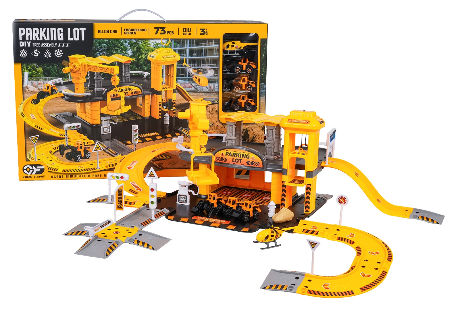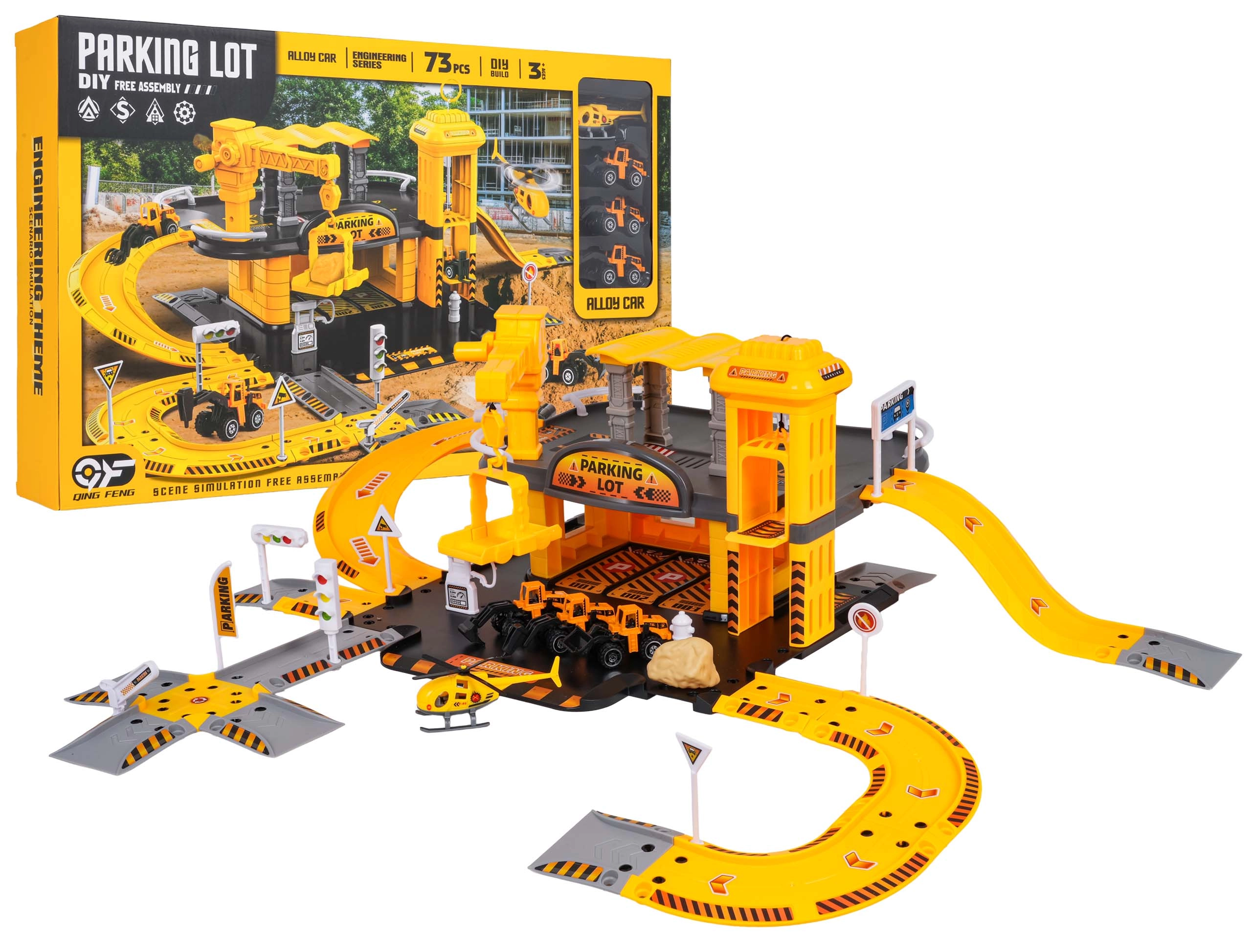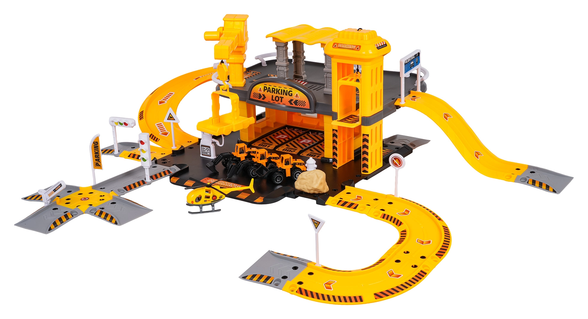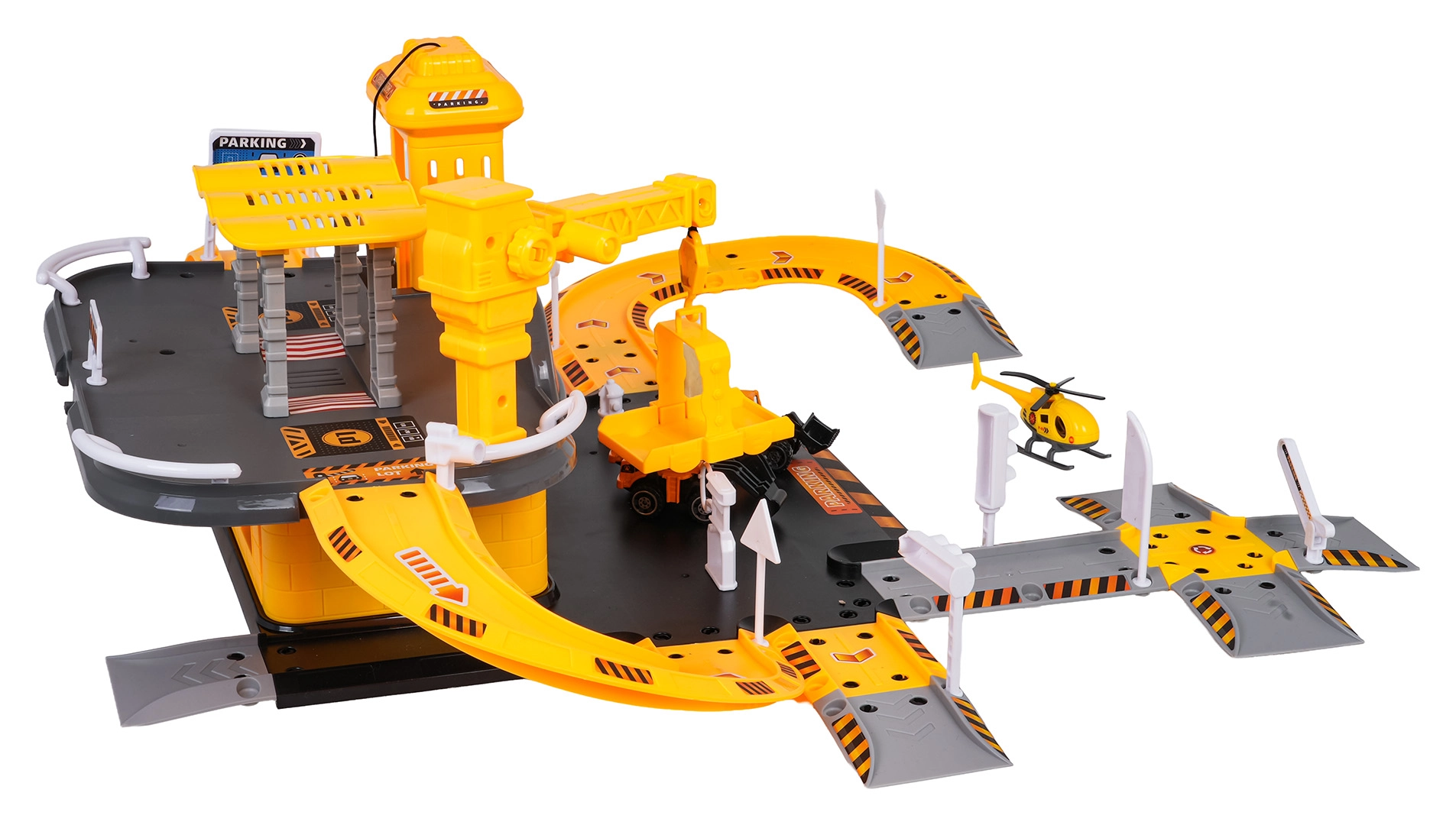 Ovo detaljno izrađeno građevinsko parkiralište oduševit će sve male ljubitelje građevinskih strojeva. Donja razina nudi benzinsku postaju i ceste, lift ručno podiže vozila na prvi kat gdje se nalazi građevinska zona s funkcionalnim kranom. Sastav je kompaktan, ali donosi mnogo mogućnosti za igru i glatku vožnju po zavojitim rampama.