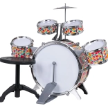 Otkrijte radost glazbe s ovom šarenom dječjom bubnjarskom garniturom sa stolicom – idealnom za male bubnjare od 3 godine. Set sadrži 5 bubnjeva, metalni činelu, pedalu za veliki bas bubanj i 2 palice. Žive boje potiču na sviranje te razvijaju ritmički osjećaj, slušni dojam i koordinaciju.