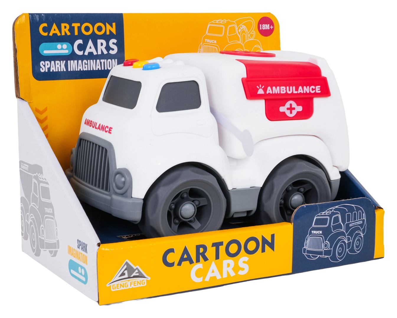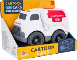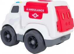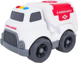 Preslatko vozilo hitne pomoći za djecu od 18 mjeseci donosi puno zabave zahvaljujući svjetlosnim i zvučnim efektima, otvarajućim stražnjim vratima i sigurnoj, obloj izradi bez oštrih rubova. Na krovu se nalaze šarene tipke koje pokreću zvukove paljenja, vožnje, vožnje unatrag te veselu melodiju. Baterije su uključene u pakiranje, pa zabava može početi odmah.