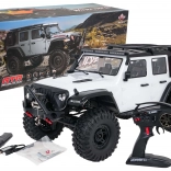 RC auto WILDERNESS spreman je za vožnju (RTR) odmah nakon raspakiravanja. Čvrsta lakirana karoserija, potpuno funkcionalna LED svjetla (kratka, stop, rikverc, pokazivači smjera) i bogati maketni detalji uključujući punovrijedni rezervni kotač stvaraju savršenu kombinaciju stila i performansi. Upravljanje se odvija na frekvenciji 2,4 GHz s mogućnošću odabira 2 načina brzine i tempomata (stalna brzina).