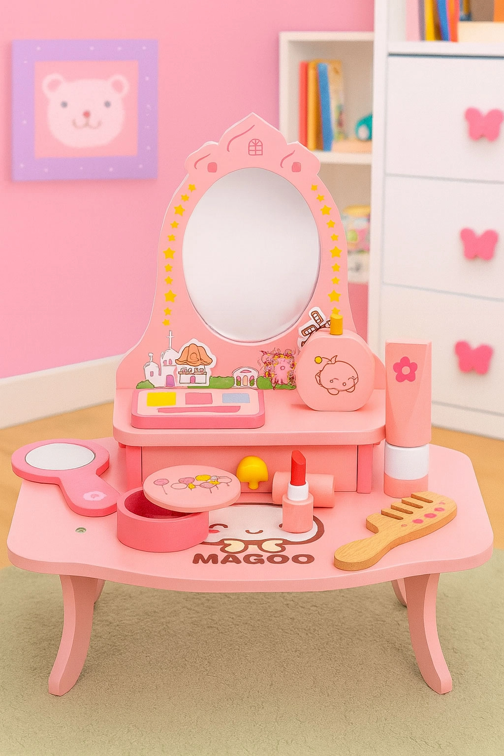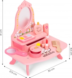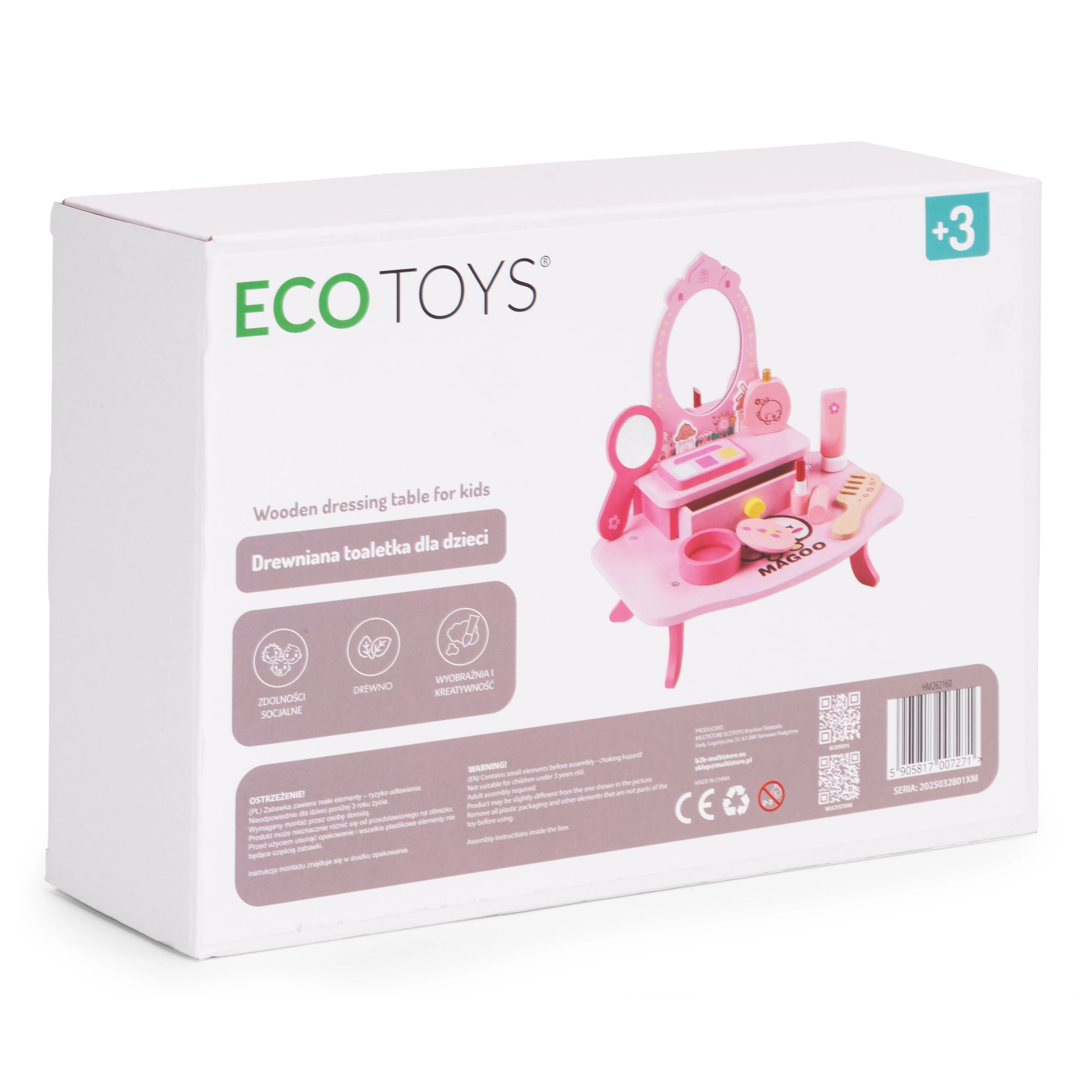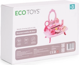 Priuštite djeci njihov vlastiti kreativni kutak – toaletni stolić ECOTOYS u nježno ružičastoj boji lijepo će se uklopiti u dječju sobu i potaknuti pretvaralačku igru. Djeca sigurno isprobavaju svakodnevne rituale, uče održavati red zahvaljujući ladici te istovremeno razvijaju manualne vještine i samopouzdanje.