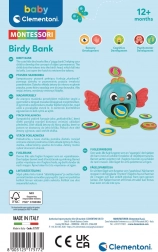 Slatka kasica u obliku ptičice brenda Clementoni pomaže djeci na razigran način razvijati financijsku pismenost. Ima praktičan otvor za ubacivanje kovanica, jednostavno pražnjenje ušteđevine i izrađena je od kvalitetnih i sigurnih materijala. Odlično se uklapa kao originalan poklon i kao dekoracija dječje sobe.