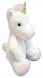 Ovaj bijeli plišani jednorog postat će najbolji mazni prijatelj za male sanjare. Ima pahuljasto krzno, nježne ružičaste šapice i uši, sjajni rog i slatki sjedeći stav – sve što jednoroga čini doista čarobnim pratiteljem.