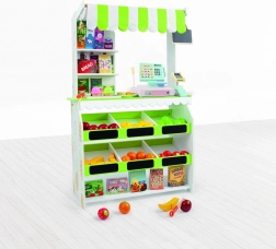 Otkrijte čaroliju igre trgovine s drvenim setom koji donosi realističan doživljaj kupovine i prodaje. Robusna konstrukcija od prirodnog drva jamči dug vijek trajanja i sigurnu igru, dok elegantan dizajn uljepšava svaku dječju sobu.