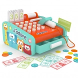 Blagajna nudi tipke, izvlačivu ladicu za novac i dodatke s kojima djeca mogu primati uplate i izdavati “povrat”. Izrađena od ekoloških i sigurnih materijala, izdržljiva za svakodnevnu igru.