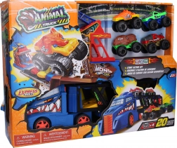 Zabavan set za male vozače: vučni kamion koji se pretvara u stazu za monster truckove. Pruža sate akcije i kreativnosti, potiče motoriku i maštu. Jednostavna transformacija, kompaktne dimenzije i atraktivan dizajn za djecu koja vole aute i utrke.