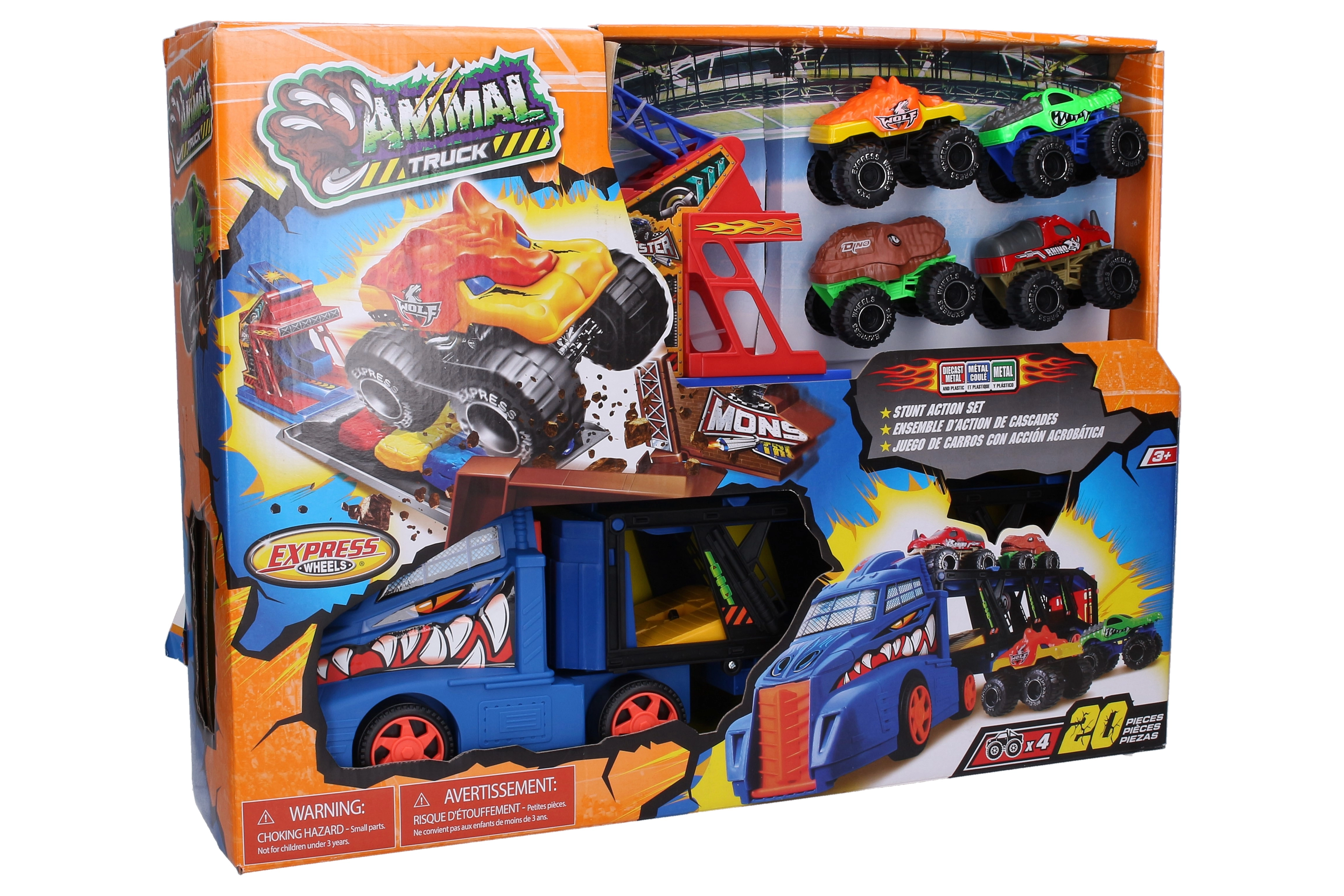 Ovaj vučni kamion s integriranom monster truck stazom donosi djeci dvostruku dozu zabave – služi kao prijenosni kamion i ujedno kao sklopiva trkaća staza. Zahvaljujući duljini od 45 cm dovoljno je velik za dinamičnu vožnju, a i dalje lako prenosiv. Brzo razlaganje i jednostavno pospremanje čine ga idealnom igračkom za dječju sobu i putovanja.