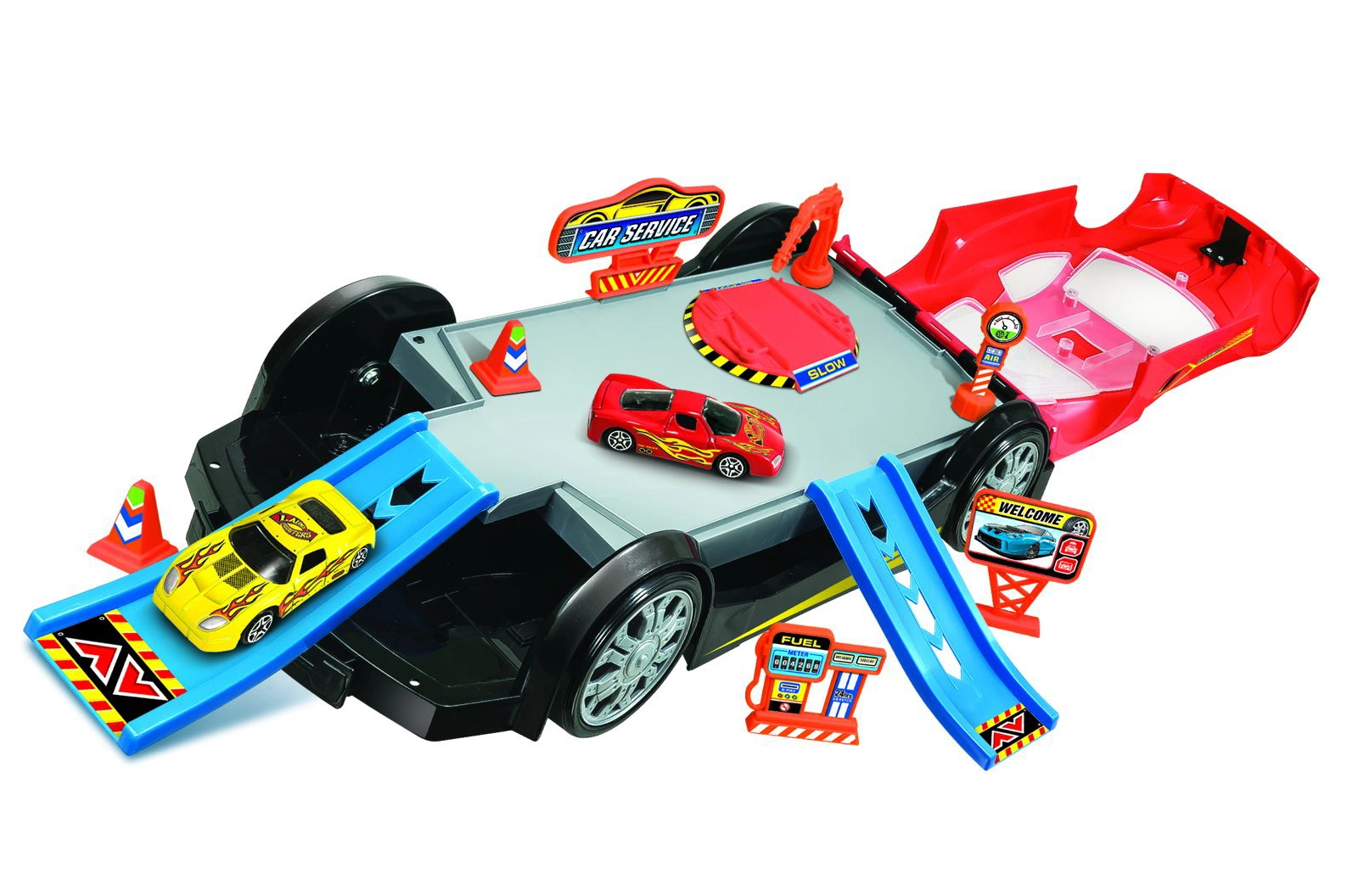 Nakon sklapanja autoservis je kompaktan i lako prenosiv, pa je odličan za putovanja ili dječju sobu. Jednostavno rasklapanje potiče finu motoriku i razvija maštu. Zahvaljujući izdržljivoj izradi igračka je spremna za svakodnevnu upotrebu.
