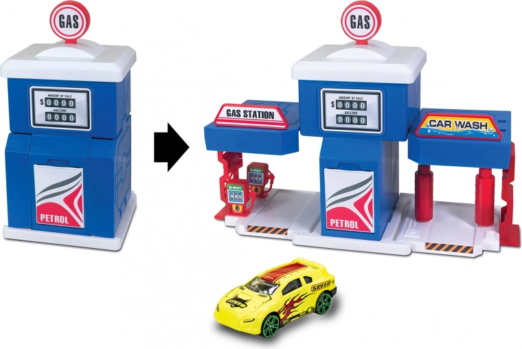 Otkrijte svijet cesta sa sklopivom benzinskom postajom duljine 15 cm. Zahvaljujući kompaktnim dimenzijama stane u ruksak pa je djeca mogu ponijeti bilo kamo. Jednostavno rasklapanje i spremanje štedi prostor i olakšava pospremanje nakon igre.