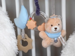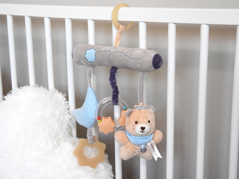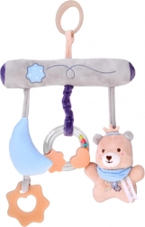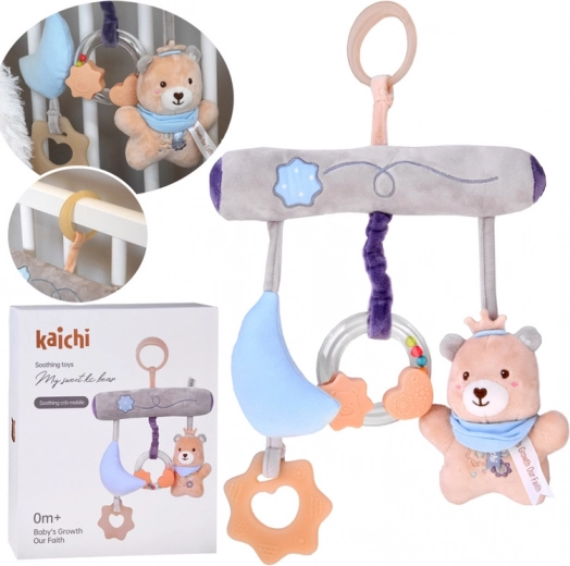 Ova viseća igračka s medvjedićem osmišljena je za mirnu zabavu i razvoj osjetila vaše bebe. Nježne pastelne boje umiruju, raznolike teksture i zvukovi potiču prirodnu znatiželju i razvoj motorike. Zahvaljujući univerzalnom prstenu lako je pričvrstite na krevetić, kolica ili autosjedalicu.