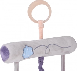 Preslatka viseća igračka u pastelnim bojama razveselit će bebu već od rođenja. Nudi mekane materijale nježne prema koži, senzoričke elemente za razvoj vida, sluha i dodira te praktično pričvršćivanje na krevetić, kolica ili autosjedalicu. Sastavni dio su plišani medvjedić, mekani šuškavi mjesec, silikonsko grizalo u obliku zvijezde i prozirna zvečka s obojenim kuglicama.