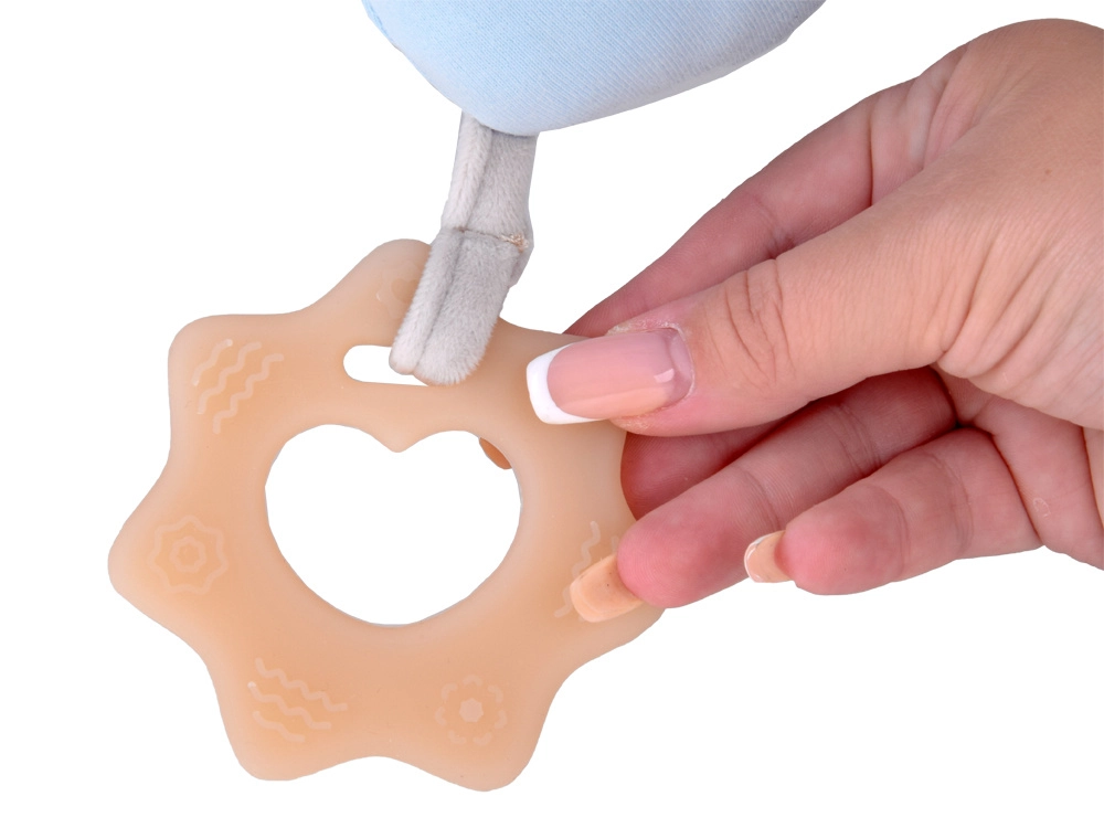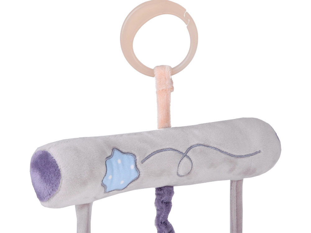 Svi elementi prilagođeni su malim ručicama: mekani pliš za maženje, šuškavi mjesečić za slušnu stimulaciju, silikonsko grizalo za olakšanje pri izbijanju zubića i prozirna zvečka s obojenim kuglicama za vizualne poticaje.
