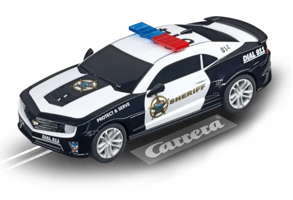 Model policijskog vozila CHEVROLET Camaro Sheriff donosi na vaš autodrom autentičnu atmosferu interventne jedinice. Zahvaljujući kvalitetnoj izradi i pametnim tehničkim rješenjima uživat ćete u glatkoj vožnji, čvrstom držanju trkaće linije i efektnim svjetlosnim upozorenjima.