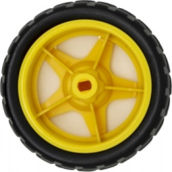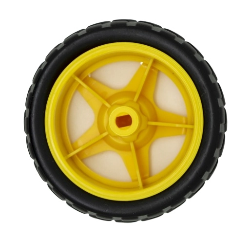 Univerzalni plastični kotač s crnom gumenom gumom promjera 65 mm za robotske setove i RC vozila. Idealan za Arduino robote, line follower robote i robote za izbjegavanje prepreka. Nudi dobro prianjanje i sigurno kretanje po pločicama, podovima i u blagom terenu.