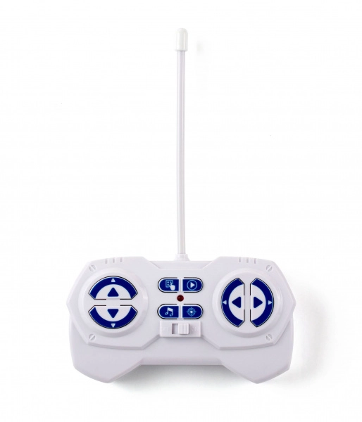 Ergonomski daljinski upravljač s preglednim tipkama omogućuje upravljanje kretanjem, zvukovima i posebnim funkcijama robota.