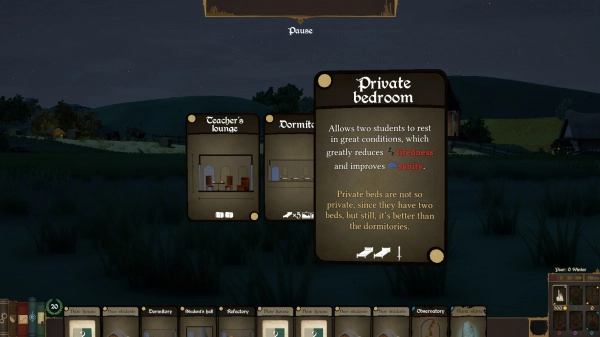 Strategija, upravljanje i narativne odluke idu ruku pod ruku. Zapošljavajte kvalitetne profesore, brinite se o dobrobiti studenata i pregovarajte s frakcijama fantasy svijeta. Progresivna kampanja donosi nove lokacije, događaje i izazove – od orkovskih napada do inspekcija školskih nadzora.