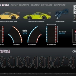 Startni set sadrži sve što vam treba za brzi početak – dva automobila Porsche 911 GT3, ravnice, zavoje i dio START/CILJ. Zahvaljujući jednostavnoj montaži i demontaži stazu ćete brzo sastaviti i prilagoditi. Ne nedostaju karijerni načini, različite težine niti online utrkivanje za još veći izazov.