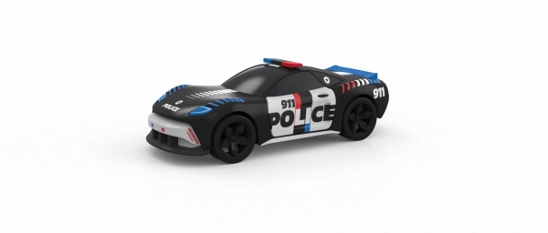 Dio seta su dva detaljna modela – policijsko vozilo Police Car i sportski Green Racer – te dva žična upravljača brzine. Ugrađeni brojač krugova donosi pošteno mjerenje, a tematske dekoracije policijske potjere upotpunjuju atmosferu. Napajanje je moguće s 4× AA baterije, a stazu je moguće napajati i putem USB‑C (punjač nije uključen u pakiranje).