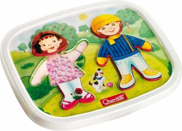 Otkrijte zabavnu magnetičnu slagalicu QUERCETTI Dressy Baby za djecu od 3 godine, koja potiče kreativnost, finu motoriku i koordinaciju oko–ruka. Djeca mogu lako kombinirati odjevne komade na dvjema figuricama zahvaljujući jakim magnetima, a sve se sprema u praktičnu kutijicu s poklopcem za jednostavno odlaganje i prenošenje.