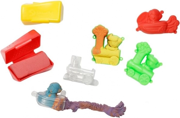 U pakiranju se nalaze dvije boje mase, kalupe u obliku vozila i prozirne kapsule za izradu i izlaganje akcijskih figurica. Set je idealan za kućnu igru i kreativne radionice – potiče maštu, koncentraciju i razvoj motorike.