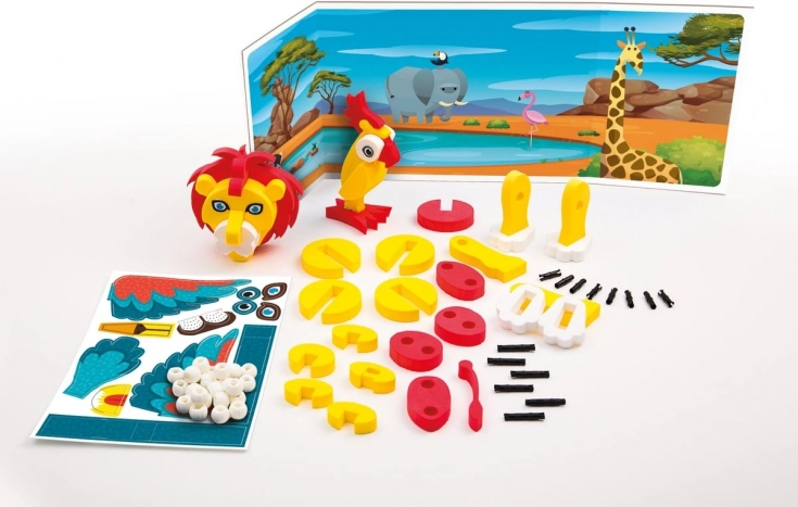 Uz ovaj kreativni set djeca će kroz igru sastaviti preslatke životinjice od mekih pjenastih dijelova. Dijelovi se lako hvataju, ugodno se stišću i sigurni su za male ruke. Igra potiče razvoj fine motorike, koordinacije oko–ruka i mašte.
