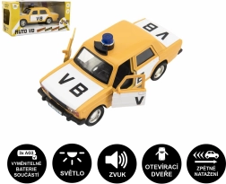 Stilizan model policijskog auta VB Lada razveselit će svakog malog policajca. Nudi povratni pogon, svjetlosne i zvučne efekte, otvarajuća prednja vrata i kompaktne dimenzije 12 cm. Baterije 3× AG3 uključene su u pakiranje.