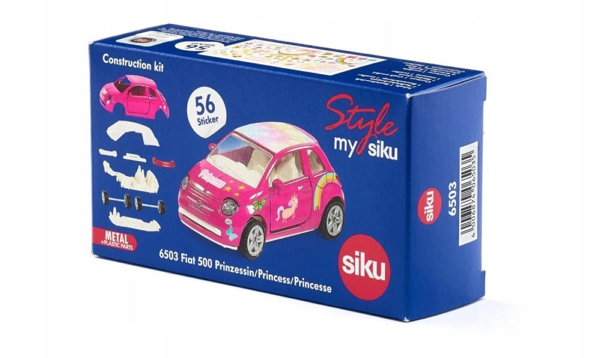 Ružičasti FIAT 500 u izdanju Princess od Siku odličan je izbor za male dizajnerice i sve ljubitelje autića. Model dolazi kao zabavan konstrukcijski set, pa će djeca najprije sastaviti auto, a zatim ga dotjerati priloženim naljepnicama s motivima duge, zvjezdica i jednoroga. Zahvaljujući kombinaciji metala i plastike, model je čvrst, trajan i spreman za svakodnevnu igru.