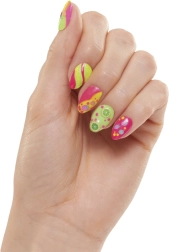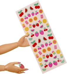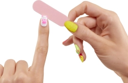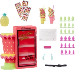Izradite savršene nokte: odaberite tipse, prilagodite oblik turpijom, zalijepite, nanesite lak i dovršite ukrašavanje šljokicama ili naljepnicama. Sve spremite u stilski prostor za pohranu – mini hladnjak i pult kafića.