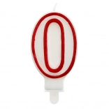 Stilizirana svijeća u obliku broja 0 s izraženim crvenim obrubom daje svaknoj torti svečani izgled. Izrađena je od kvalitetnog voska, ima dugo vrijeme gorenja i zahvaljujući praktičnom postolju lako i stabilno je postavite na tortu. Idealna za rođendane, obljetnice i druge proslave za sve dobne skupine.